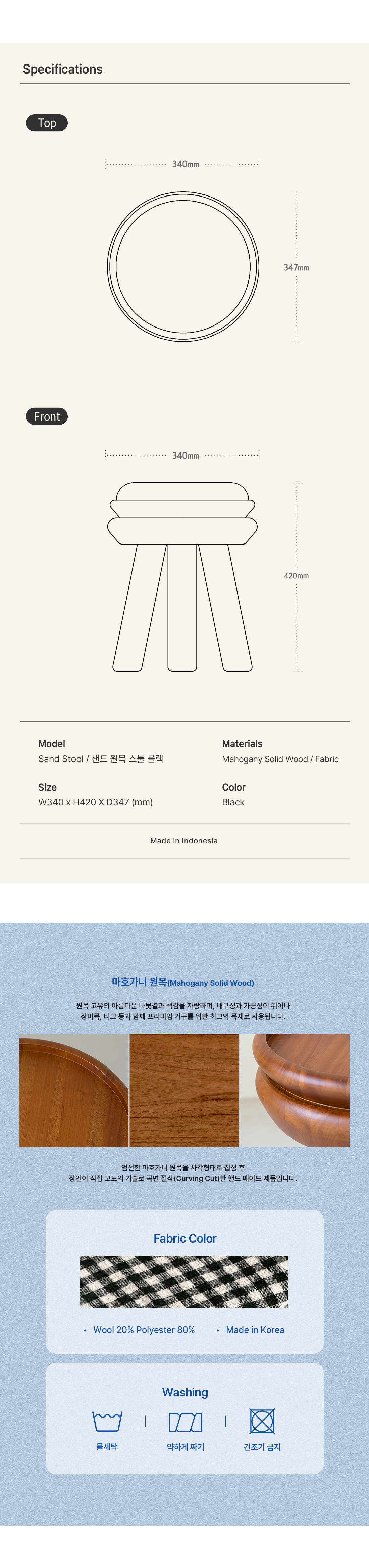 | 구성품 | 샌드 원목 스툴(블랙) |
