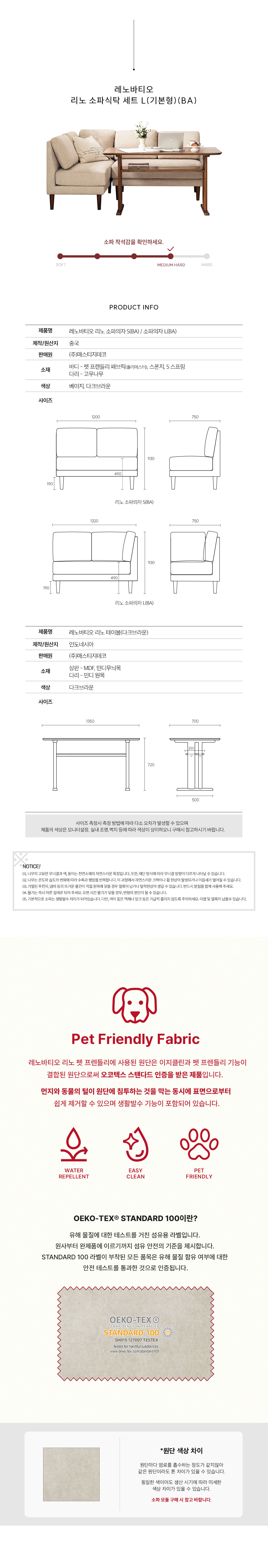 HOME 레노바티오 시리즈 🧡NEW 신상품 -4.30 예약판매 런칭할인🧡레노바티오 리노 소파식탁 세트 L(기본형)(BA)